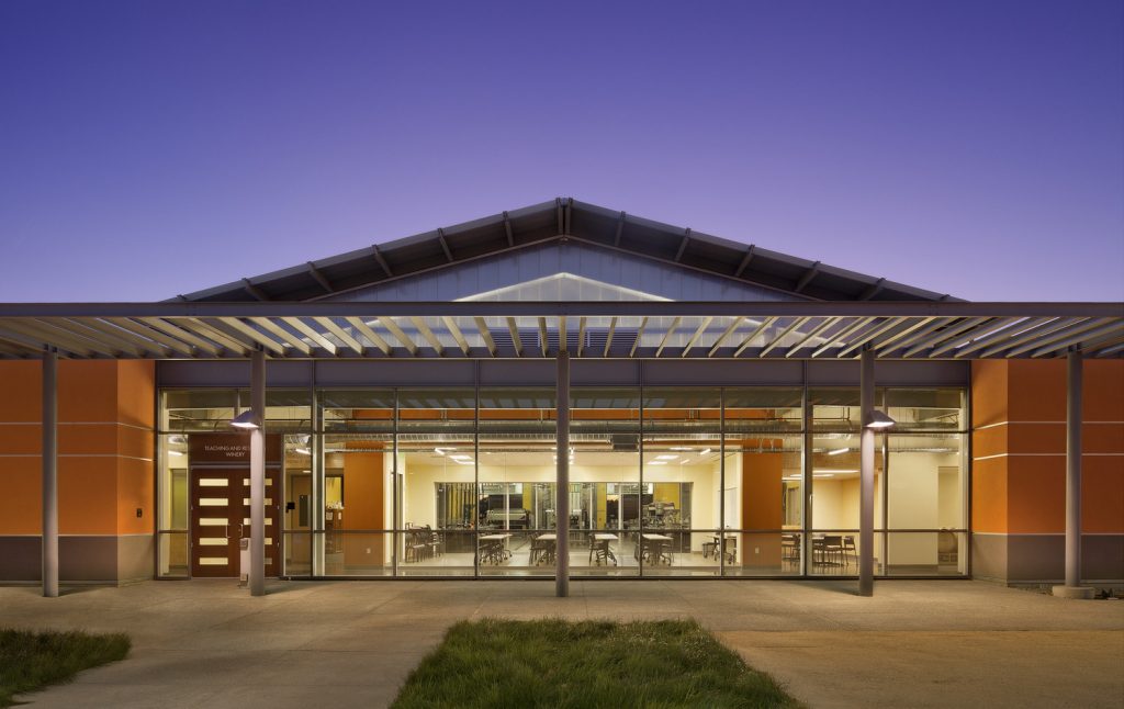 The UC Davis Winery, Brewery and Food Science Building started with a unified mission. It was critical to the undertaking to start with the right intentions and partner with a designer and builder who also share that common vision and goal. We wish we could say “the goal was simple,” but it wasn’t. UC Davis had ambitions to create a state-of-the-art research institution and pilot facility for wine-making, brewing, and food processing—which are not known for being easy on the environment—that also reflected the hallmark of sustainability. On average, brewing beer takes seven gallons of water to produce one gallon of beer, and wine making takes 872 gallons of water to produce one gallon of wine. Food science leaves a little more to the imagination, using a variety of production methods and consuming large amounts of energy. That’s why the lofty goal of a LEED Platinum winery, brewery, and food-processing pilot plant had never been done before, until now.